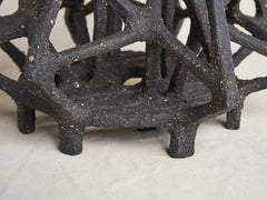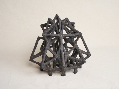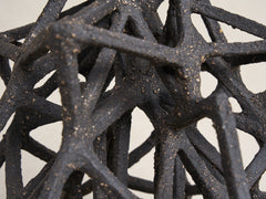 Bronwen Grieves strives to balance structure with fluidity, using organic and inorganic forms as a reference point in her work. As a ceramist she has been developing her crafts using flat coils which are incised with horizontal or vertical lines before being fixed together. She builds her pieces using grogged stoneware primarily in black and white. The glaze is used sparingly and often limited to slips which are partially rubbed away to reveal the texture and color beneath.