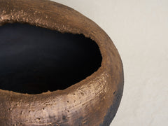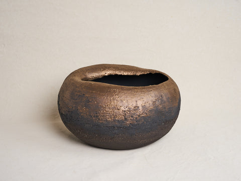 The LAVA collection is a series of pieces exploring the essential, vital elements of the ceramic process; Water, Fire, Clay.... in reference to the powerful element of Lava. Poetry in the contrast of the strength of the stoneware once fired which comes from this smooth, soft, fragile material which is the clay at its beginning. Those pieces interpreting the relationship between the primal nature of the golden, incandescent and malleable Lava which turns into a strong, textured, dark Volcanic Rock set by the air temperature. This primal material transition is at the beginning of a new land.