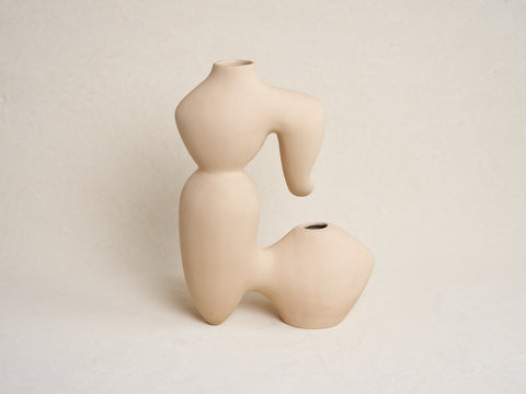 Inspired by the love for pristine nature, this large sculptural vase channels the organic shape of plants. A graceful design metaphor handcrafted in white stoneware, the Thesium vase can be used to cherish at home the beauty of plants in two distinct ways: as a decorative piece on its own or as a support of ever-changing floral arrangements.