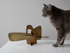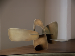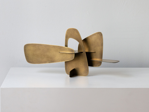 This piece is part the collection featuring small table-top sculptures that display balance and harmony through its organic shapes and playful composition.