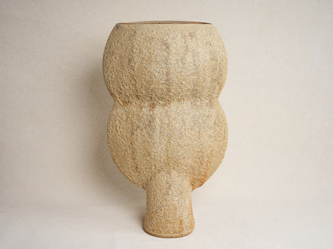 Heather Rosenman's designs emphasize minimalism by simplifying forms to their organic essence, featuring graphic surfaces or lava glaze developed through experimentation. Inspired by ancient forms, industrial design, Brutalism and geology, she’s driven to combine a primitive aesthetic with modern sensibilities.