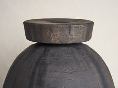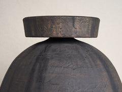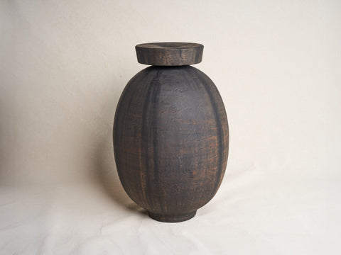 Each vessel is made by separate components thrown on a wheel. An application of colored slips and colorants are then added to the surface and burnished giving it a patina. At each firing, the surface is sanded and another colorant is added creating the matte, smooth finish.