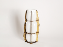 the brass cage is baked to 500 °C (950°F) which leaves the brass in an “Aged” but also unpredictable finish. A wax coating is applied to protect the brass as it comes out of the kiln. The finish can vary as a result of the process.