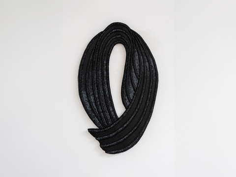 Marijke De Cock has been working for years as a designer within the team of Dries Van Noten, where she specializes, among other things, in the conception and creation of exceptional ornaments and jewelry. It is an ancient and traditional, time-consuming technique that all together manifests itself in distinctive series of abstracted, intuitive wall sculptures which, adorned with beads, above all celebrate the desire to create, using a material that goes back thousands of years, motivating us from childhood onwards to invent ornaments with it, to embellish a person or a place.