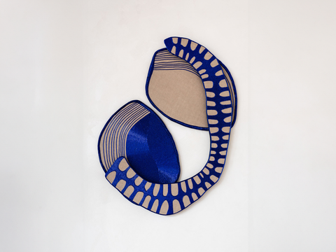 Marijke De Cock has been working for years as a designer within the team of Dries Van Noten, where she specializes, among other things, in the conception and creation of exceptional ornaments and jewelry. It is an ancient and traditional, time-consuming technique that all together manifests itself in distinctive series of abstracted, intuitive wall sculptures which, adorned with beads, above all celebrate the desire to create, using a material that goes back thousands of years, motivating us from childhood onwards to invent ornaments with it, to embellish a person or a place.