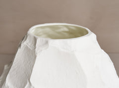 Big Vase starts life as a solid block of plaster that is hand carved by hammer and chisel into the shape of the vase. It challenges the strength of the potters, the physical properties of the clay, and the technical capabilities of the pottery.
