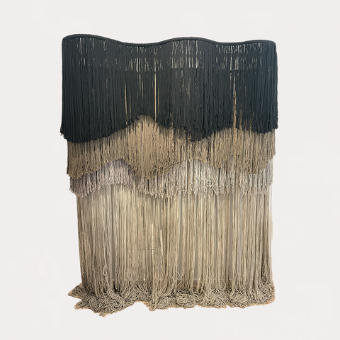 A wall piece in shades of grey that creates a game between light and darkness, power and delicacy, purity and sex.