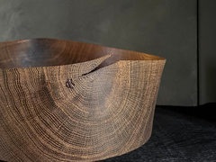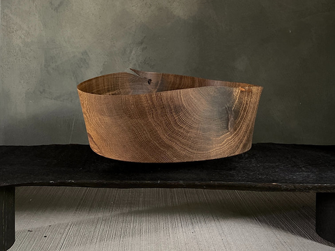 Moss Studio crafts each piece meticulously in their small woodturning workshop. The studio releases a limited collection of unique pieces annually, all turned from freshly cut, solid logs on their lathe.