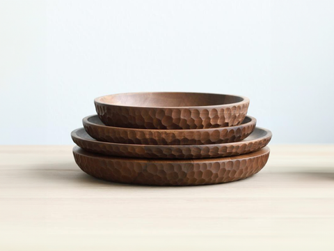The aim here was to create simple objects that can add warmth and tactility to the experience of cooking and eating at home. The platters and bowls in walnut are finished only with bee’s wax, which is a natural food proof wood finish that can be refreshed from time to time at home.