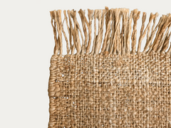 Terra is an earthy everyday rug reminiscent of the grounding sensation one feels when traversing a path of sand, grass and soil. Handcrafted from fine jute, undone sophistication permeates the loose flat weave, which is elegantly finished with a tousled fringe.