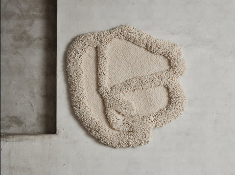 Wooden rings are attached on the back of the product for hanging and keeping the irregular shape close to the wall.