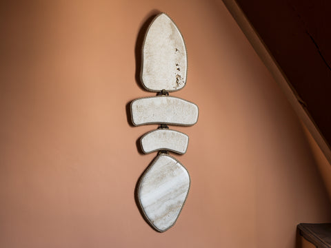 materials, reflecting the values of femininity, serenity, and balance. Delphine's work invites reflection and interaction, encouraging viewers to connect with the tactile beauty of the materials and the emotions they evoke, while promoting a deeper connection with the physical world.