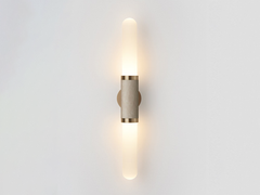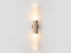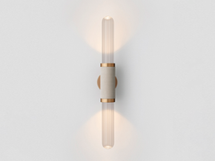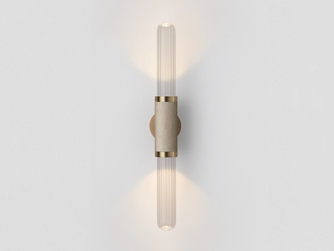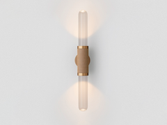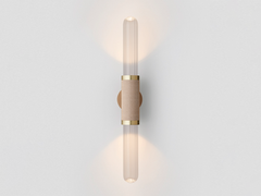 The unification of luxurious crafts exists through the Scandal Collection. Scandal casts a slim and finely considered silhouette. Notable for its barrel-like cuff and inlay Scandal’s elongated proportions are capped end-to-end by rounded mouth blown glass that conceals the light source, exemplifying the quiet brilliance of artisanal glass and metalwork.