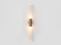 The unification of luxurious crafts exists through the Scandal Collection. Scandal casts a slim and finely considered silhouette. Notable for its barrel-like cuff and inlay Scandal’s elongated proportions are capped end-to-end by rounded mouth blown glass that conceals the light source, exemplifying the quiet brilliance of artisanal glass and metalwork.