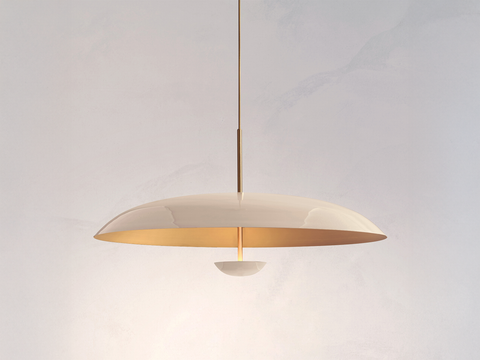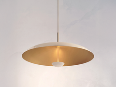 Two finely lacquered brass plates make up this pendant light. The light is projected into the shade and reflects outwards, illuminating without creating a glare.
