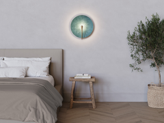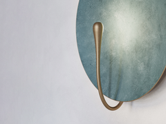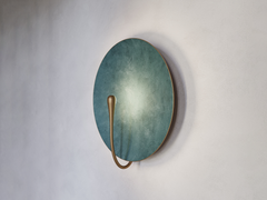 Inspired by the beautiful textures of nature, a verdigris patina is applied on a hand-spun brass plate to create this unique finish. Softly illuminated with integrated LED from within.