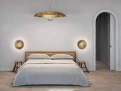 Inspired by the beautiful textures of nature, a mixed patina is applied on a hand-spun brass plate to create this unique finish. Softly illuminated with integrated LED from within.