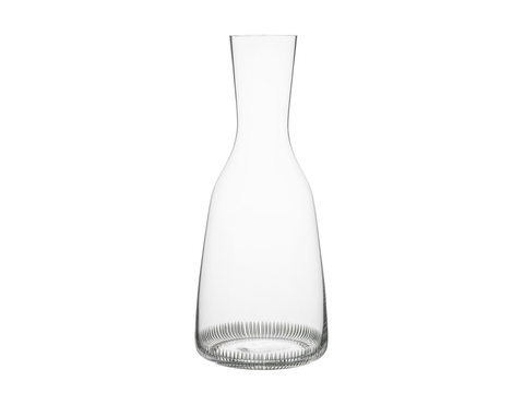 The set, comprising of a tumbler and a decanter, was designed by Marco Dessí, an Italian designer living in Vienna. The decanter is inspired by Italian design classics. It can be used for wine and water alike, while the tumbler works perfectly well for beer or Scotch, especially in the cut version. Dessí demonstrates how a rather austere design can comes to life when executed by skilled craftsmen. A specially developed lamella cut playfully hints at technical aesthetics and functionality. An ornament at the base prevents from visible scratches. Equally important is the haptic pleasure when drinking from the glass – literally the "grip".