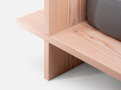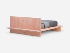 With an emphasis on longevity and the sensory response, Bed One has a quiet, considered form with beautiful functionality and detailing. Utilizing astonishingly proportioned planks of Douglas fir timber, the headboard is made from just five wide planks, the wood grain a continuous flow to the platform base. A simple shelf features at the back of the headboard.