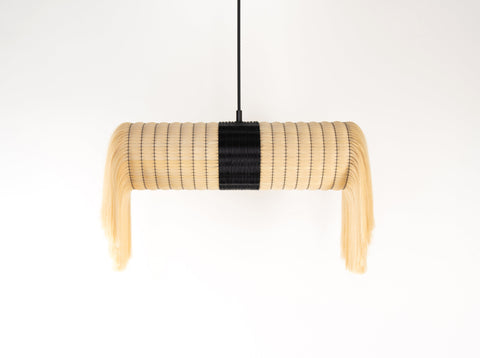 A modern hand woven horsehair shade provides distinct dimmable overhead illumination. The Notos light is available in three horse hair colors which are illuminated by two beautiful dim to warm LED bulbs. The light provides a unique overhead atmospheric light quality with the benefit of smooth full range dimming.