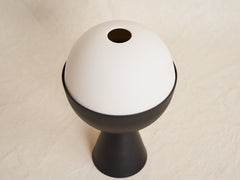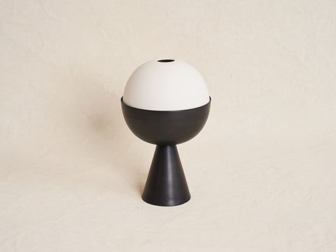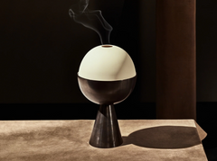 A result of experimentation with geometric forms in the Apparatus library, the Censer connects ancient ritual with the tradition of coveted objects. Utilizing the full range of Apparatus manufacturing techniques, spun, cast and machined brass are assembled to create a form that recalls a chalice. As an incense burner, smoke emerges from a hand-cast porcelain dome and as a candleholder the Censer becomes a brass torch.
