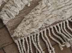 85% unbleached New Zealand wool, 15% cotton / sand + shell