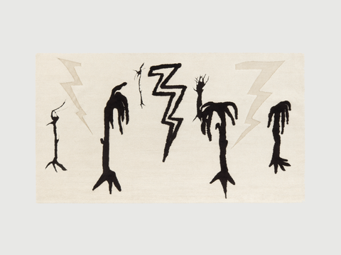 collaborative synergy between Scarlett Rouge and cc-tapis. Ogham, A Good Night Kiss, Nefertem and Ashes to Ashes, Dust to Dust; inspired by ancient Egyptian mythology and personal introspection, each rug is deeply rooted in the French interdisciplinary artist’s journey of soul-searching and healing.