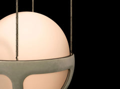 mold-blown glass, brass armature and hand-wrapped leather or suede