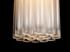 The TASSEL series condenses the warmth and decadence of a traditional sconce to a concise, modern conclusion. Emanating from a brass dome the light is amplified as it refracts through mold-blown glass cylinders.