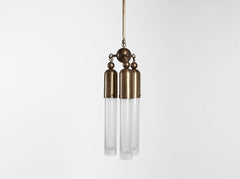 The TASSEL series condenses the warmth and decadence of a traditional sconce to a concise, modern conclusion. Emanating from a brass dome the light is amplified as it refracts through mold-blown glass cylinders.