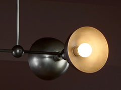 Inspired by the tension and dynamics of the circus act, this series cantilevers glowing bowls in movable formations on the ceiling or wall, creating a soft illumination and graphic silhouette.