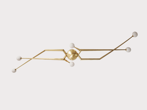 Humans have always observed the movements of the celestial bodies, attempting to give them meaning, predict the future, and seek divine guidance. This lamp represents a zodiac sign, shaped in alignment with the concept of such signs. It consists of light points suggesting celestial bodies, interconnected by dynamic lines. If the heavens truly held prophetic guidance, the designer would place his own among them. The lamp symbolizes a dancing couple, with elongated, intertwined limbs converging at the center. It tells a story of happiness in its dynamic, fleeting form—an experience that can only occur between two people: a story of fundamental happiness.
