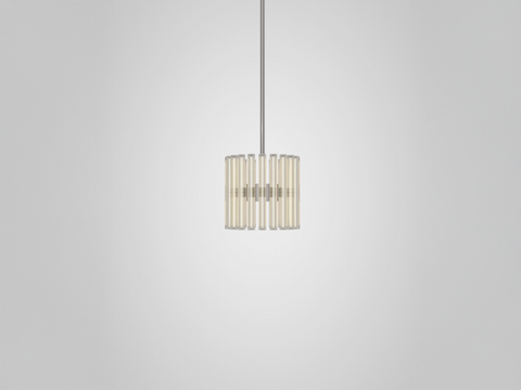 A chandelier of multiple adaptations which projects layers of ethereal rings of light created from linear LED light bulbs. Created and produced by Lee Broom, the hand blown glass bulbs contain a perpendicular LED filament which refracts against the vertical lines of the reeded glass. En masse and reflecting in the rings, the overall effect ensues a glowing aura.