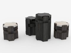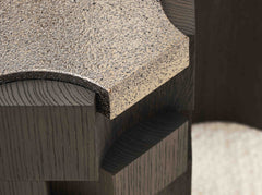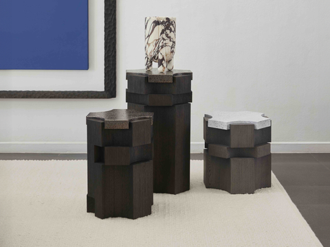 ARA is a collection of plinths/ pedestals composed of a base in brushed oak and a tabletop in enameled lava stone.