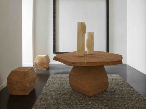 It took two years to perfect the Terra dining table. The time needed to domesticate the material, to listen to and understand it. Inspired by its little sister, the Terra side table, this XL version uses the same architectural base, but incorporates a new technical feat: the addition of an impressive tabletop in a patchwork of Variegato Lombardo. The result is a majestic piece of unprecedented proportions, in which Luca Erba not only masters the material, but also pays full homage to his Italian heritage, offering Collection Particulière a masterpiece of hand-crafted design.