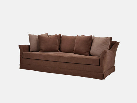 Louisa is a generous sofa characterized by one smooth seat and gently curved back- and armrests. The slim upholstered armrests take up minimal space while providing maximal comfort.
