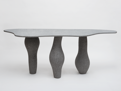 volcanic stone legs, anthracite grey unpolished San Lorenzo granite top