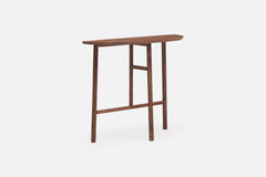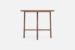 The Trio series is a tectonic exploration where the composition of the table legs is the design focal point. The tables stand on three legs, with each leg attached to another leg with an intermediate horizontal substructure. The tables express a purity of form and material, with the unexpected design focus under the table, where an intricately composed lattice work brings a hidden elegance to the otherwise simple and unassuming table ensemble.