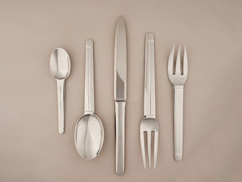 Flatware may be machine washed. However, taking certain precautions and remaining attentive to cleaning products used is recommended: – powder detergent is preferable to chlorinated liquids, and should be used sparingly; – prior to each washing, be sure to separate silver cutlery from stainless steel items; – to facilitate the flow of water on the blades, knives should be placed in the silverware basket with the blades facing downward; – remove the cutlery at the end of the cycle or leave the dishwasher door cracked open to avoid condensation spots on the blades; – to prevent scratches on the knives, be sure that they are separated and do not knock together. Nevertheless, it is natural for the silverware's finish to evolve with continued use and washing.