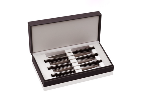 Developed alongside Michelin-starred chef Pierre Gagnaire, who brought his talent and a cook's eye to the making of the collection. With these expert elements, Puiforcat combines performance and innovation to create this line of luxury steel and rosewood steak knives.