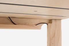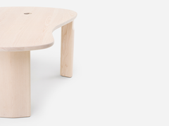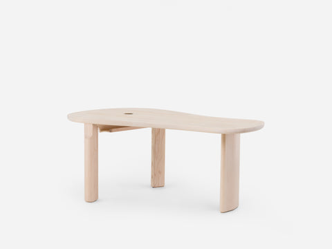 Twenty-Five Work Table is a reimagining of the typology, offering flexible seating with no front or back. Inspired by the work of Charlotte Perriand and the organic shape of gourds, the solid wood table has been designed to take centre stage in a room with its welcoming shape and tactile detailing. Comfort and haptic qualities were deeply considered in its creation, from the thick desktop and inviting edge profile to the solid wood legs with the subtle scooped-out detail showcasing the beauty of the material.