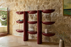Tai Hen artfully frames spaces and objects with its bold lacquer form. A functional piece with vivid colour and a reflective surface. The Tai collection masterfully blends function and sculpture. Rather than complements, the products are counterpoint, maintaining a distinct identity while affirming diverse spaces and objects.