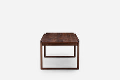 October Dining Table is the material embodiment of a threshold—a quiet manifesto for the new season. Celebrating the dialectic between the enduring and the ephemeral, its timber structure communicates the steadfast presence of institutional wisdom, a foundation that holds and supports while above it, the tabletop is conceived as a plane of possibility, its surface a stage for the transient rituals of gathering and exchange. It is here that the fleeting present, be it a book, a shared meal or a moment of collaboration will be displayed and served.