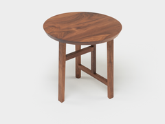 The Trio series is a tectonic exploration where the composition of the table legs is the design focal point. The tables stand on three legs, with each leg attached to another leg with an intermediate horizontal substructure. The tables express a purity of form and material, with the unexpected design focus under the table, where an intricately composed lattice work brings a hidden elegance to the otherwise simple and unassuming table ensemble.