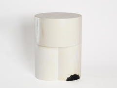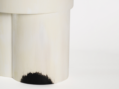 Designer, Linde Freya's aim is to honor the horn material without touching but only by watching and exploring the beautiful color variations that can be found. Applied on wood in many painted layers by the designers hand - a fake horn effect is formed.