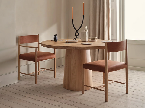 Made from english oak or walnut the, Note Table has a solid coopered base, inspired by traditional barrel making and is triple fumed to enhance the wood's natural color and grain.
