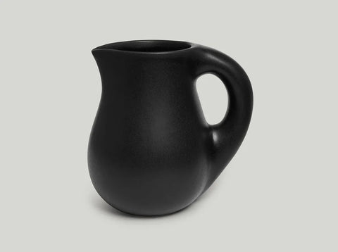 A chunky serving jug with an outsized handle cast in stoneware. Designed by Faye Toogood as part of the Dough ceramics collection, named for the common ground of kneading in both baking and pottery. Hand-shaped in the Toogood studio in London before being cast in stoneware, the collection plays with rounded, swelling forms evocative of rising dough.