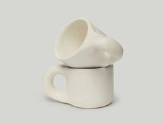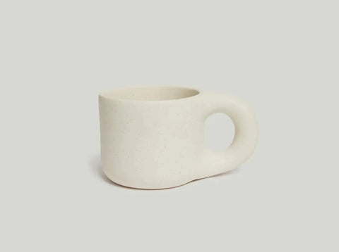 A chunky mug with an outsized handle cast in stoneware. Designed by Faye Toogood as part of the Dough ceramics collection, named for the common ground of kneading in both baking and pottery. Hand-shaped in the Toogood studio in London before being cast in stoneware, the collection plays with rounded, swelling forms evocative of rising dough.