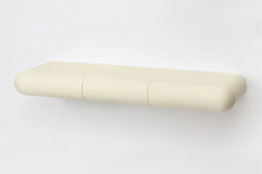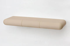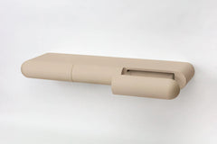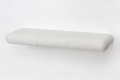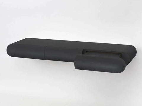 With three smoothly rounded drawers running flush with its silhouette, this sculptural desk uses cantilever support for a stripped-back approach.