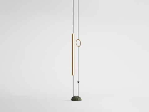electroplated aluminum or hand finished brass, hand blown murano glass, cathedral glass, marble (green guatemala cone) and onyx (white sphere)